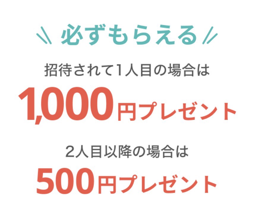 ※私の紹介コードからの登録は先着1名様限定で、1,000円分がもらえます!