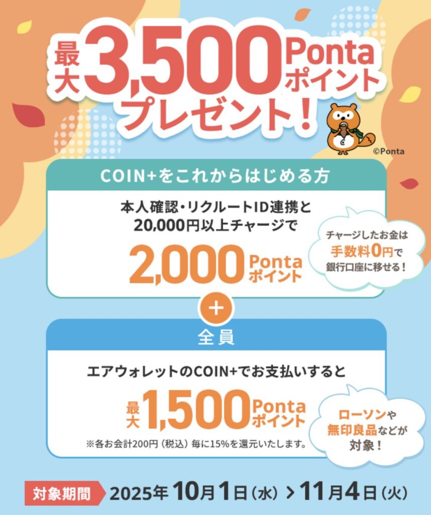 この期間中に新規登録すると、最大3,500円分のPontaポイントがもらえます!